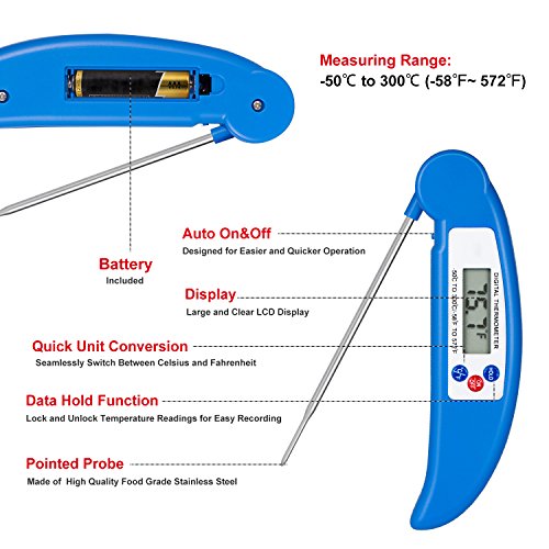 Accurate Read- You can be confident to cook with this digital food thermometer, no worry about whether the food is overdone or underdone. The measuring temperature is -58°F to 572°F.