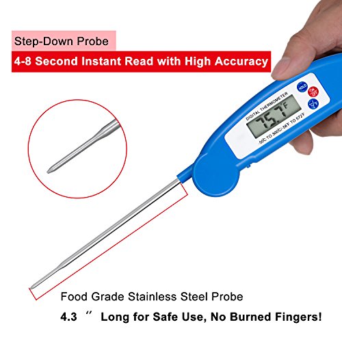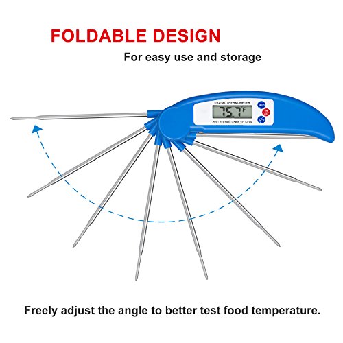 Digital Meat Thermometer Cooking Thermometer Instant Read with Food Safe Probe for Grill Kitchen bbq Smoker Oven Oil Milk by Lighting Mall (Blue)