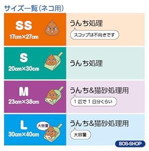 袋サイズは「SS、S、M、L、LLサイズ」となります。