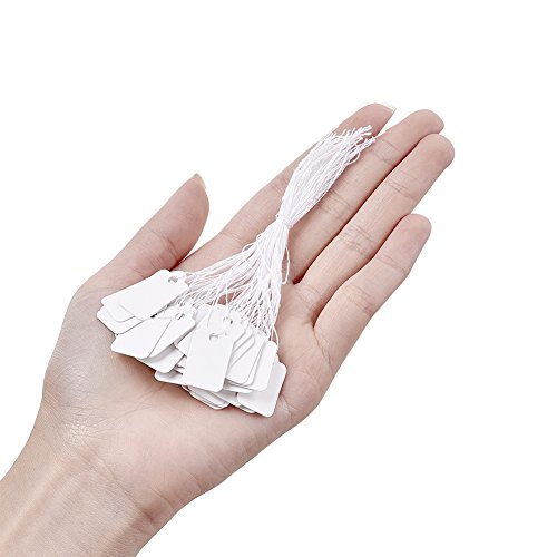 Beadthoven 500pcs Jewelry Price Tags, Rectangle, Item Price Label with String, Price Paper Display, White, 23x13mm