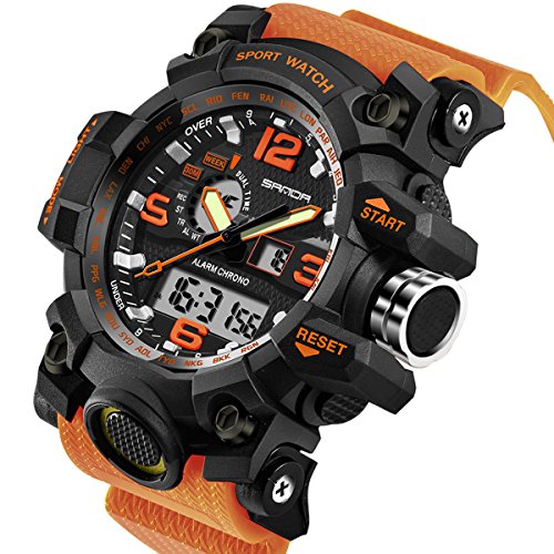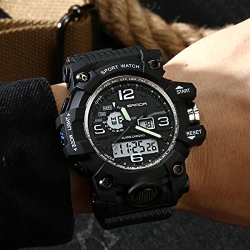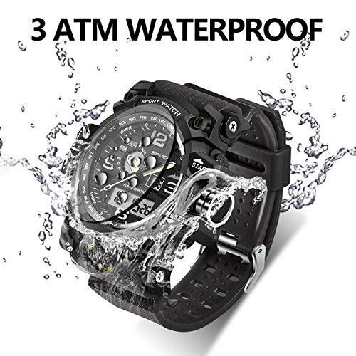 Waterproof MOVEMENT and DISPLAY: Water resistant up to 3 ATM (Suitable for everyday use. Splash/rain resistant. NOT suitable for diving, swimming, snorkeling, water-related work) Please do not press any button under water; Quartz movement with analog and digital display, make reading the time much easier.