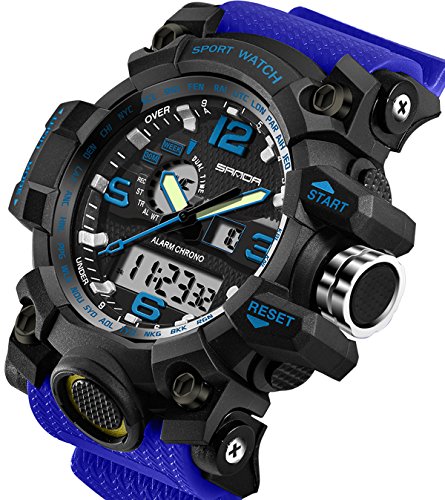 MUTIFICATIONAL FOR DAILY USE: Stop Watch; Dual Time; LED Backlight(show time clear in the dark );Alarm; Calendar Date Week Month; Water Resistant; Shock Resistant;12/24-hour Time Format. This sport watch is perfect fit with all kinds of sports and it's really an everyday watch.