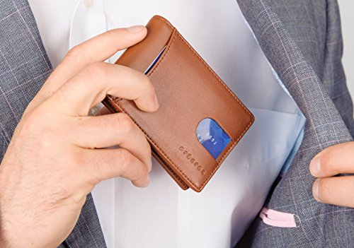 Made from high-grade genuine leather, the horizontal bifold wallet is soft to the touch and withstands heavy use. Machine-stitched edging and lightly rounded corners make this item both durable and aesthetically pleasing. The money clip and metallic keychain are made from pure tarnish-resistant stainless steel for a polished look that lasts.