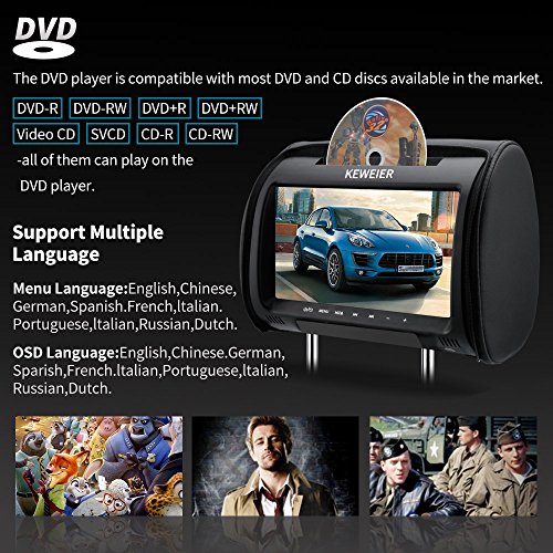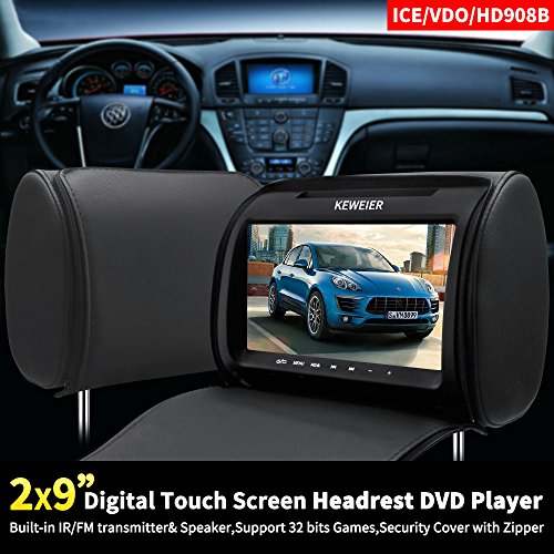 -. Binding : Electronics -. Brand : KEWEIER -. EAN : 0745750883137 -. Feature : One wireless Game pad (FREE) / Security Cover with Zipper / Supports 32-bit games with wireless game controller / IR infrared transmitter function (IRA,IRB),FM transmitter function / May NOT be compatible for vehicles with Active headrest systems -. Label : KEWEIER -. Manufacturer : KEWEIER -. PackageQuantity : 1 -. ProductGroup : Car Audio or Theater -. ProductTypeName : CAR_AUDIO_OR_THEATER -. Publisher : KEWEIER -. Studio : KEWEIER -. Title : Car headrest DVD player 9" KEWEIER HD TFT Screen Portable car dvd player with FM Game Disc Mp3 wireless Game pad (DVD 1 PCS ) -. UPC : 745750883137