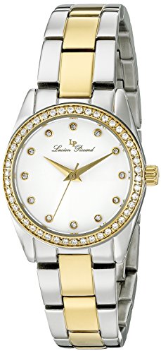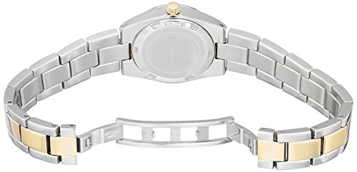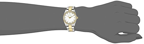 White Dial with Gold Tone Hands & White Crystal Hour Markers; Gold Tone IP Stainless Bezel Encrusted with White Crystals; Stainless Steel Case and Bracelet with Gold Tone IP Stainless Center Links
