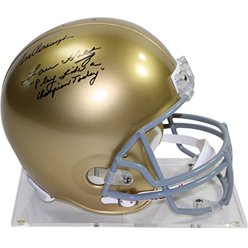 - Lou Holtz And Ara Parseghian Have Personally Hand-signed This Notre Dame Replica Full Size Helmet.inscribed Play Like A Champion Today By Lou Holtzsigned In Black100% Guaranteed Authentic Includes Steiner Sports Certificate Of Authentic ity Features Tamper