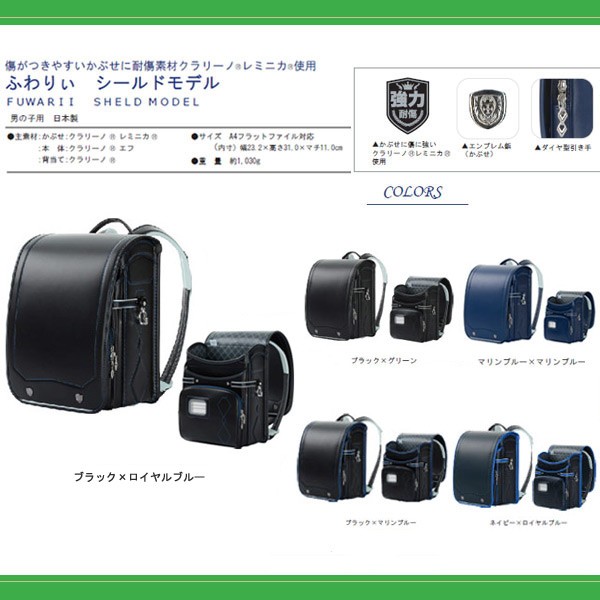 ふわりぃ シールドモデル ランドセル 男児用 2016年度モデル 03-04036 ブラック/ロイヤルブルー