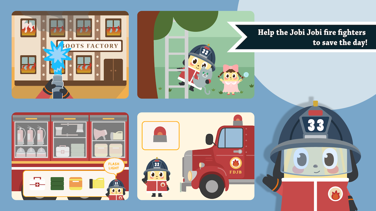 - Feature : Come visit our Jobi's fire station and explore how fire fighters do their jobs! / You can experience many events that are happening in the Jobi town! / Cute characters and fun interaction. / No in-app purchase / No in-app advertising