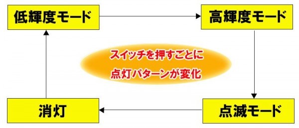 | 仕様 | 充電方法:2通り(USB充電、ソーラー充電) 100mAh/3.7V リチウムポリマー電池(内蔵) 光源:LED3個 防水加工:IPX7 Micro-USB(A-MicroB)ケーブル長さ:60cm USB充電時間目安:約5時間 点灯時間目安:高輝度モード約5時間、低輝度モード約12時間 ソーラー充電点灯時間目安:低輝度モード約2~3時間 |