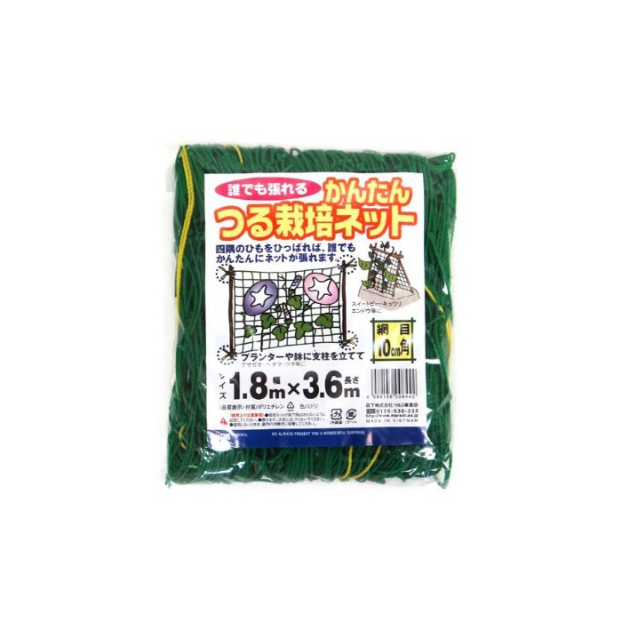 원본상품명: マルソル(MARSOL) かんたんつる栽培ネット 10cm角目 1.8×3.6m グリン 四隅取付ロプ付