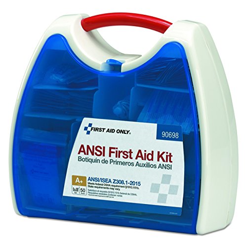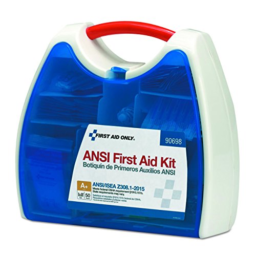 Studio : Pac-Kit Publisher : Pac-Kit Binding : Misc. Product Description 100) plastic bandages, 1" x 3" (1) first aid tape, ½" x 5yd (12) triple antibiotic ointment packets (15) Black antiseptic towelettes (1) CPR mask with one way Valve (1) burn dressing, 4" x 4" (12) first aid/burn cream packets, 0.9G (1) cold compress (4) eye pads and adhesive strips (1) eyewash, 1oz (10) hand sanitizer packets, 0.9G (4) nitrile exam gloves (2) conforming Gauze roll, 2" (1) Scissors (6) Gauze dressing pads, 3" x 3" (2) trauma pads, 5" x 9" (1) triangular sling/bandage, 40" x 40" x 56" (1) sterile Gauze bandage, 4 "x 4yd (1) first aid guide (10) fingertip fabric bandages (10) Knuckle fabric bandages (3) insect sting Relief wipes (1) tweezers (20) alcohol cleansing wipes (4) Providence-Iodine wipes (1) elastic bandage, 2" x 5yd (4) antacid tablets (4) aspirin tablets (2) allergy tablets (5) disposable thermometer. 0