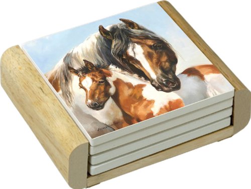 - Set of 4 absorbent coasters in wooden display holder