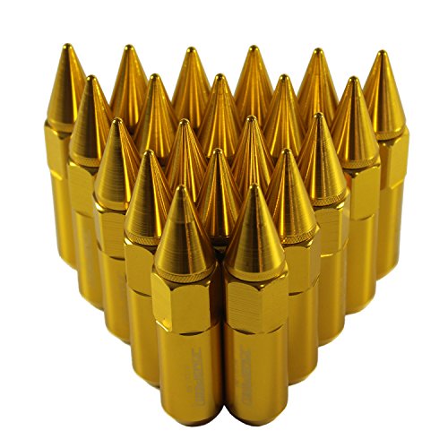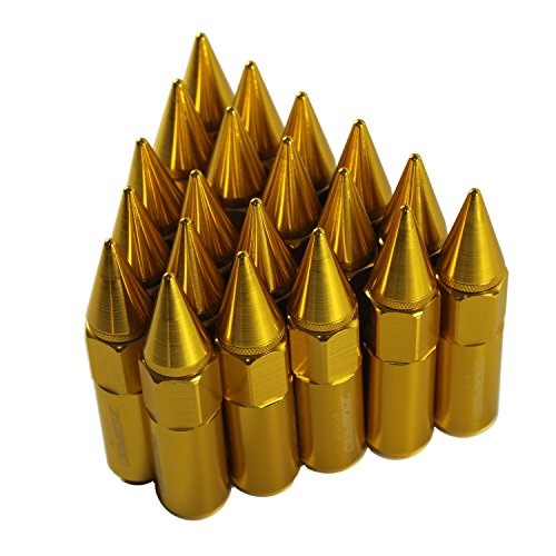 JDMSPEED New Gold 20PCS M12X1.5 Cap Spiked Extended Tuner 60mm Aluminum Wheels Rims Lug Nuts