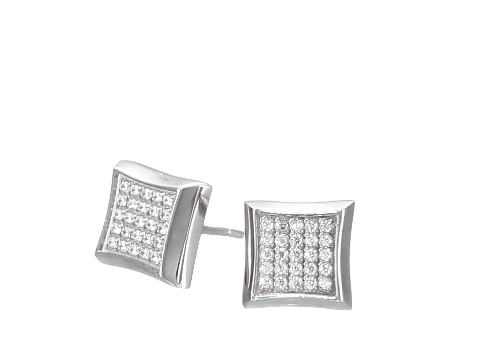 Men's Stainless Steel and Cubic Zirconia Square Cluster Stud Earrings