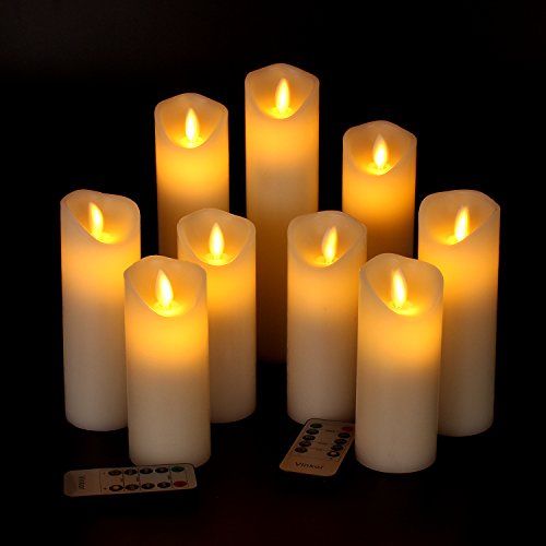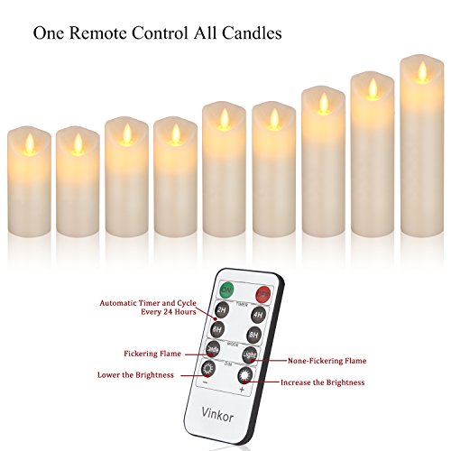 Vinkor Flameless Candles Flickering Battery Operated Candles 4" 5" 6" 7" 8" 9" Set of 9 Ivory Classic Real Wax Pillar With Moving LED Flame & 10-key Remote Control 2/4/6/ 8 Hours Timer
