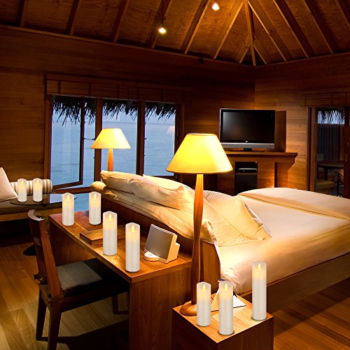 - HASSLE FREE OPERATION: For easy operation from the comfort of your sofa or bed, you will also receive one remote control with range 16.4ft that operates all candles. This 10-key remote control allows you to set timer on your pillar flameless candles per 2H, 4H, 6H, or 8H, while you can even time them to automatically turn on or off. With this super convenient remote you can enjoy the relaxation of your candles without worries!
