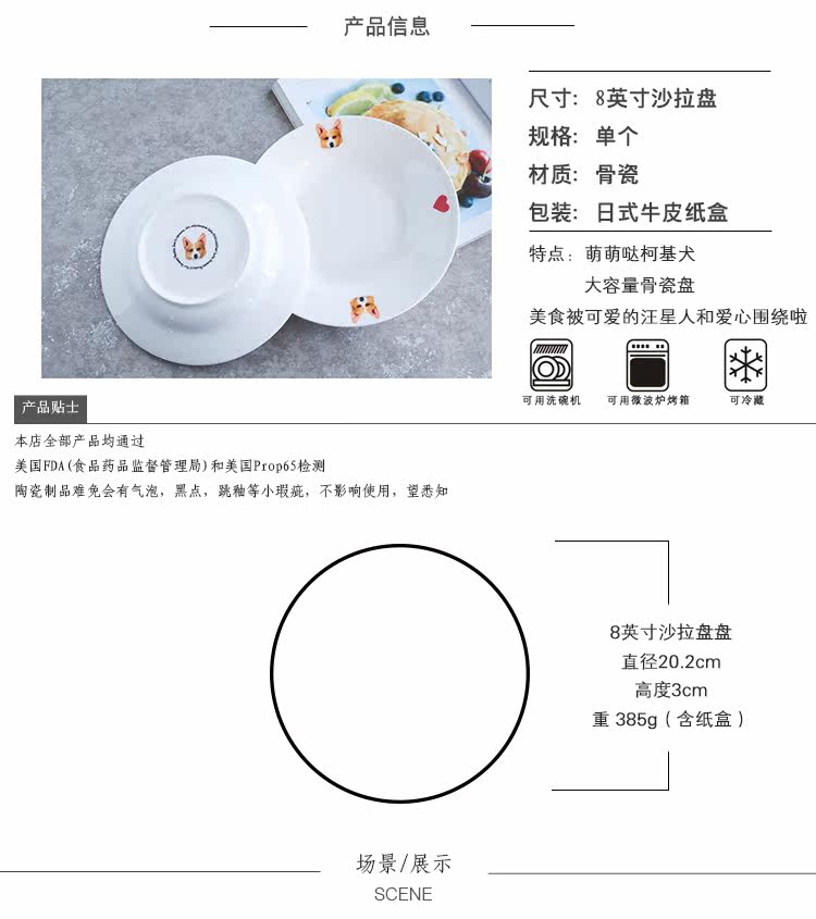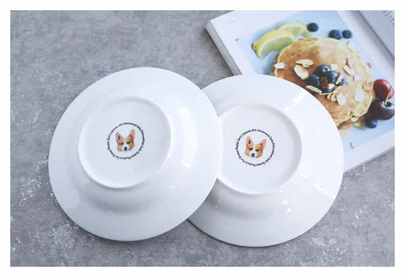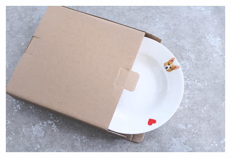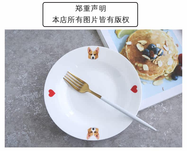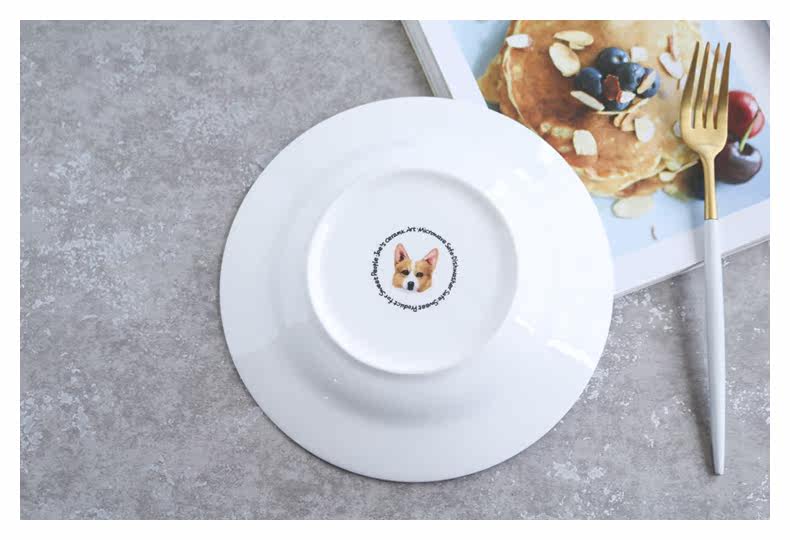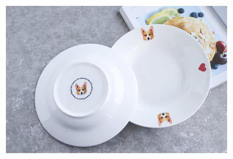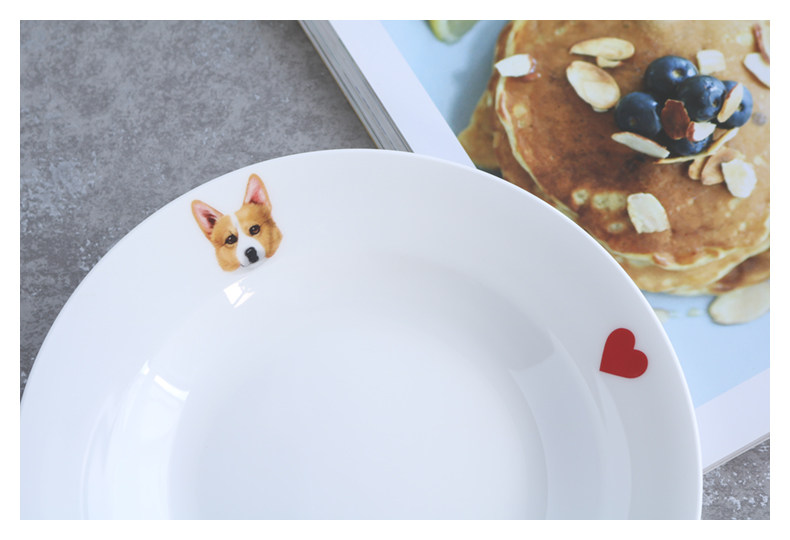铲屎君专用爱宠柯基系列家用陶瓷餐具西餐沙拉盘宽边汤盘简约爱心