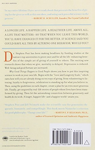Why Good Things Happen to Good People, Dr. Post and journalist Jill Neimark weave the growing new science of love and giving with profoundly moving real-life stories to show exactly how giving unlocks the doors to health, happiness, and a longer life.