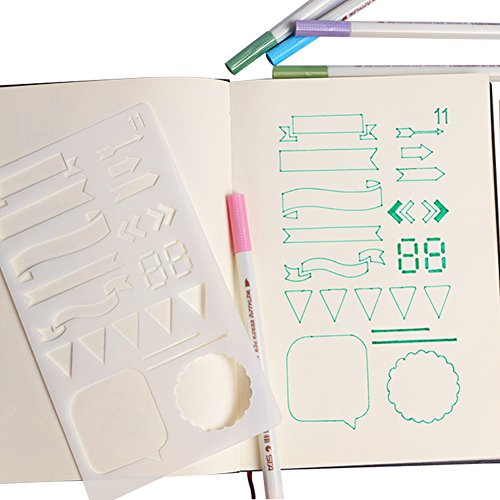 COCODE 20 Pcs Bullet Journal Stencil Set Plastic Planner Stencils for Journaling, Scrapbooking, Notebook, Card and Art DIY Projects Specification: Material: PET