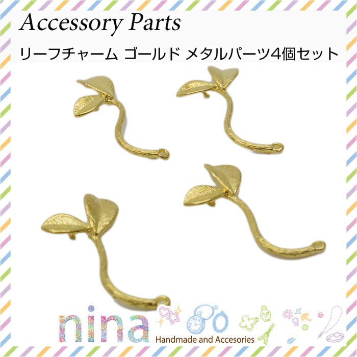 ■商品名:リーフチャーム ゴールド メタルパーツ 4個セット