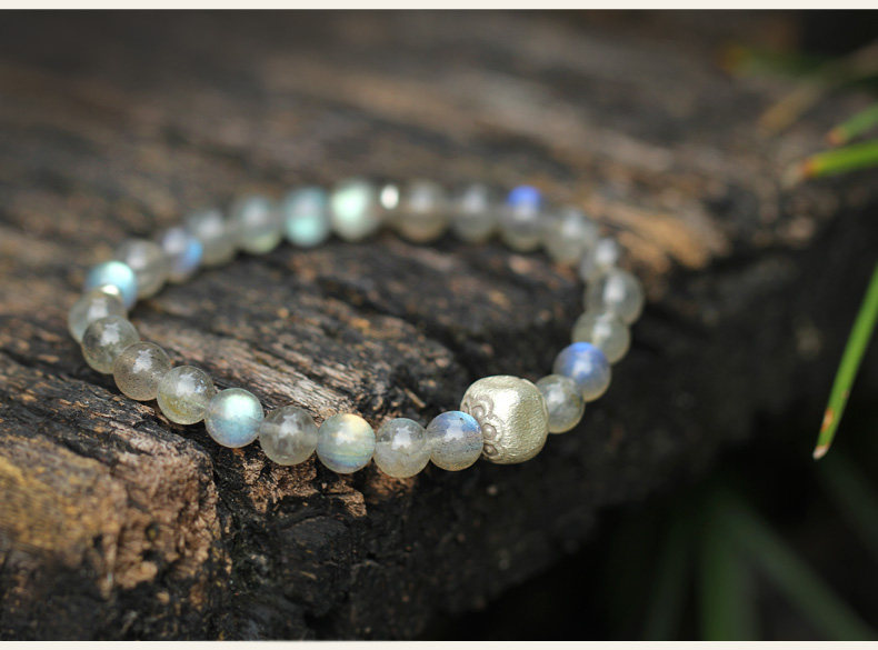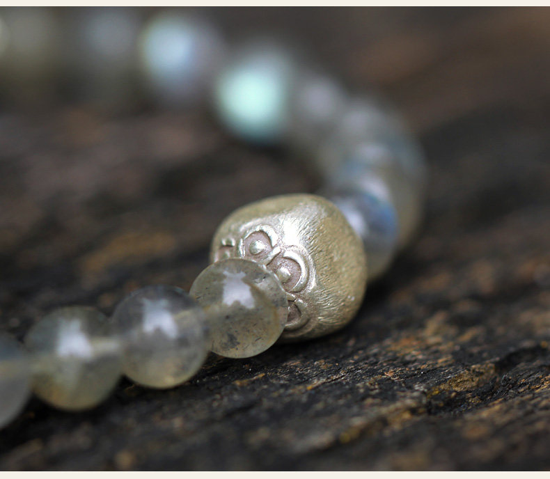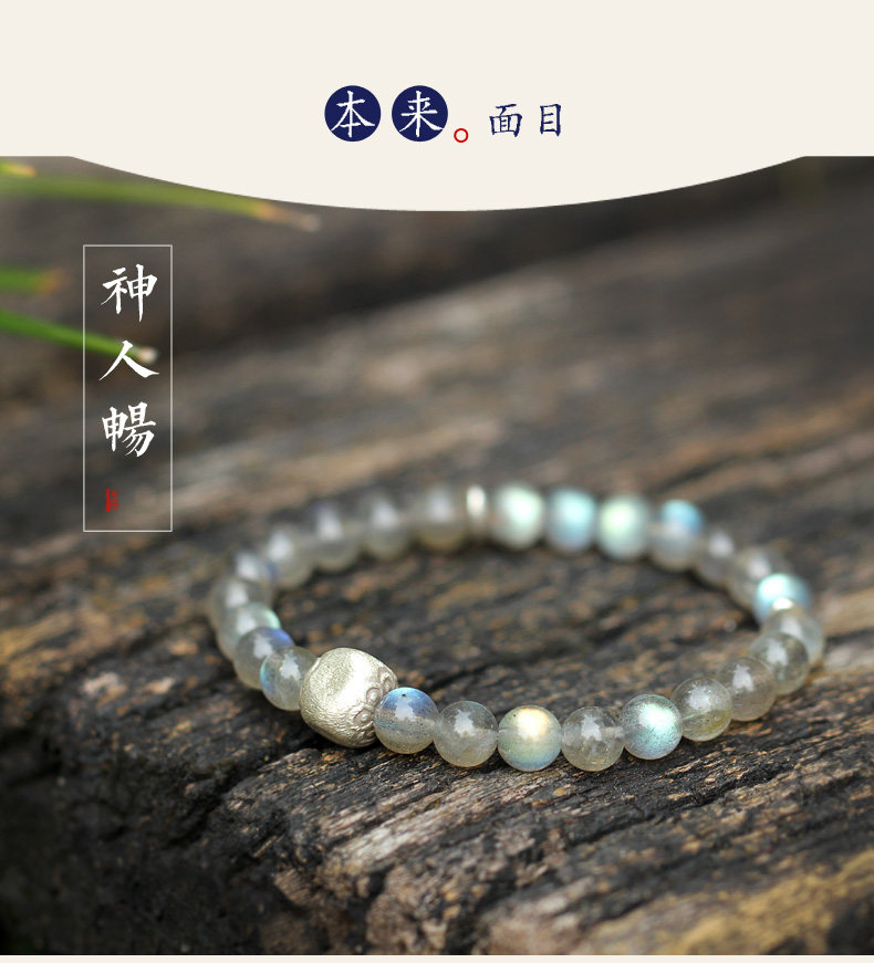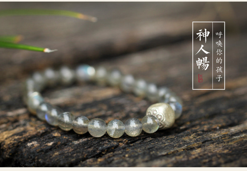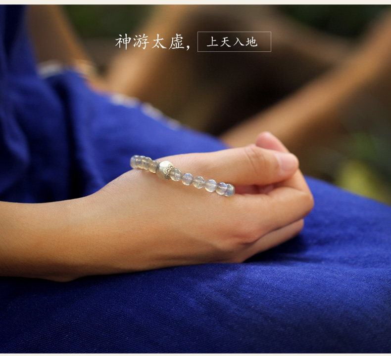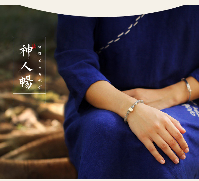 【神人畅】天然斯里兰卡月光宝石手链女925银饰品水晶手串