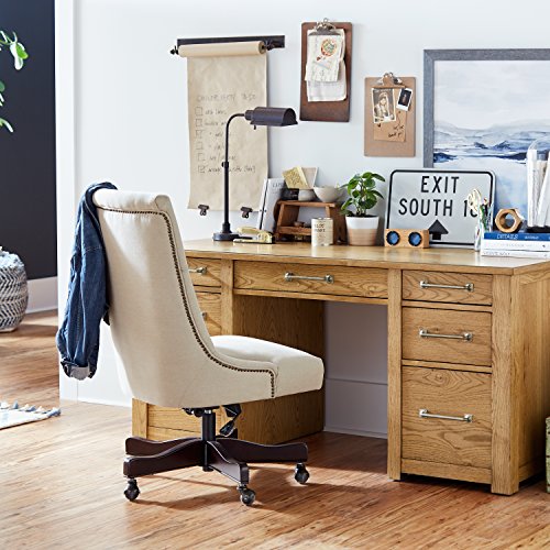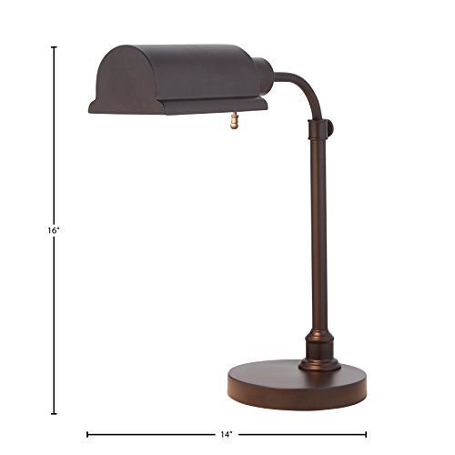 An Amazon brand - This classic pharmacy table lamp is updated with an antique bronze finish. Ready to shine light over the paperwork your desk or at your bedside, this piece is smartly styled as well as functional.Feature