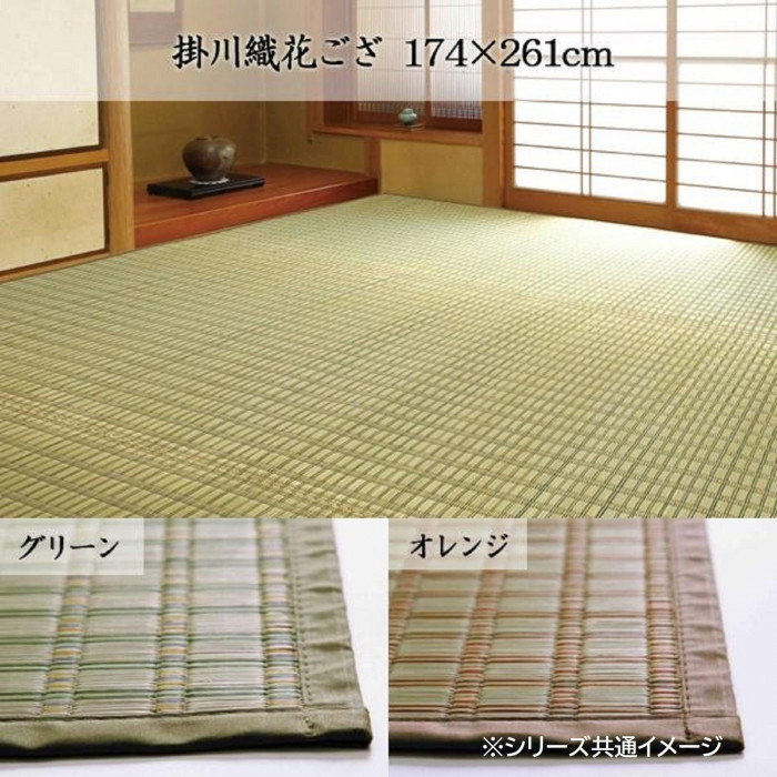 | 福岡県の筑後地方に伝わる伝統的な織り方で、福岡県の無形文化財にも指定された掛川織の花ござです。最上級のい草を通常より多く使用しているため、目詰まりがよく、耐久性にも優れています。シンプルで飽きのこないデザインは、和・洋問わずお使いいただけます。 |