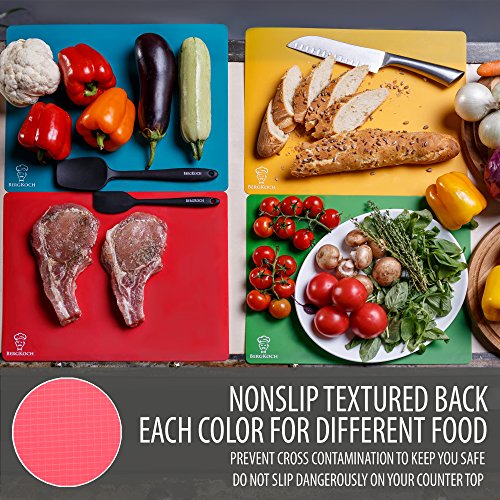 BPA-free, hygienic & odor resistant cutting mats: This set of 4 assorted colors cutting boards come with antimicrobial protection and are to be used with different types of food to prevent cross contamination and keep you and your family safe. Mats are dishwasher safe, compact and easy to store. Simple sanitation - no odors.