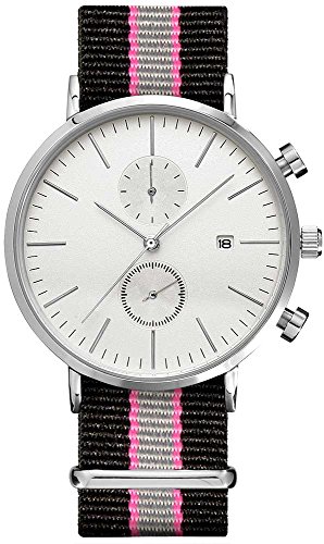 원본상품명: ClassicRound 腕時計 Chrono 41mm シルバ? + ナイロン NATO ブラック/ピンク/グレ? 20mm