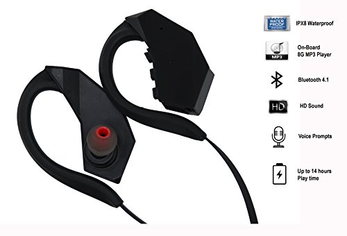 -. Feature : ✔ NEW ARRIVAL- On board MP3 Player with 8G storage memory can hold up to 2000 songs, IPX8 waterproof allows you to swimming with this earbud. To upload songs, connect to PC/Mac using the provided USB cable, an USB drive should appear on PC. Start copying your songs to the earphone and enjoy! / ✔ WATERPROOF- 100% water-resistant to a depth of 3 meters, designed for swimming, running and other sports activities; Built with international IPX-8 standard. / ✔ PREMIUM SOUND - Our echo-elimination technology and in-ear design offer superior sound quality with incredible bass above or below water, with the built-in mic this pair of headset offers easy hands-free operation and voice prompt of incoming phone number. / ✔ LONG PLAY TIME - Up to 12~14 hours, stand by 450 hours, battery 180 mAh. Last whole day without the need to recharge, full charge takes only 2 hours. / ✔ COMFORTABLE FIT - The ergonomically designed ear hooks are flexible and comfortable, guarantee comfort throughout the day. 100% SATISFACTION GUARANTEED