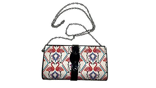 Pink Flamingo Clutch Bag Hard Case Detachable Shoulder Chain Hand Held or Shoulder