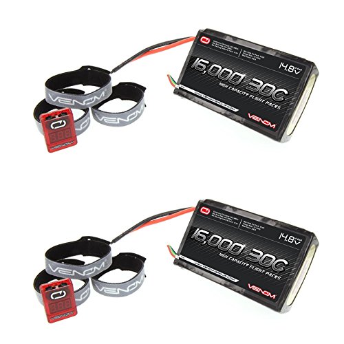 When you need the absolute largest LiPO packs available, Venom's got your back! This high capacity LiPO battery was designed with power hungry mulitrotor drones and UAVs in mind to give unprecedented flight times and unmatched performance. Perfect for platforms like the DJI Spreading Wings S900/S1000/S1000+, 3D Robotics X8+, Steadidrone, Walkera QR X800 Height Tech HT-8, HT-8C, HT-8C 180 and many other high payload vehicles. (Please verify your multirotor battery capacity before purchase.) Complete with pre-tinned 10 gauge flexible soft silicon wire, this battery is ready for the connector of your choice. Included in the box at no extra cost is the Venom LiPO Monitor, (Part #0644) and three Venom high quality Velcro battery straps (Part #15200) to ensure your new LiPO pack stays where you want it to. Get your hands on the best high capacity LiPO packs on the Market today. Battery Type: Lithium Polymer (LiPO Battery). C Rate: 30C. Volts: 14.8. Capacity: 16000mAh. Cell Count: 4S. Cell Configuration: 4S1P. Continuous Discharge: 30C (480A). Max Burst Rate: 50C (800A). Max Volts per Cell: 4.2V. Max Volts per Pack: 16.8V. Min Volts per Pack: 12V. Charge Rate: 1C (16A). Wire Guage: 10AWG. Plug Type: No Plug. Dimensions: 140 x 88 x 68 mm / 5.5 x 3.5 x 2.7 in. Watt Hours: 236.8. Weight: 1550g (54.8 oz).Feature