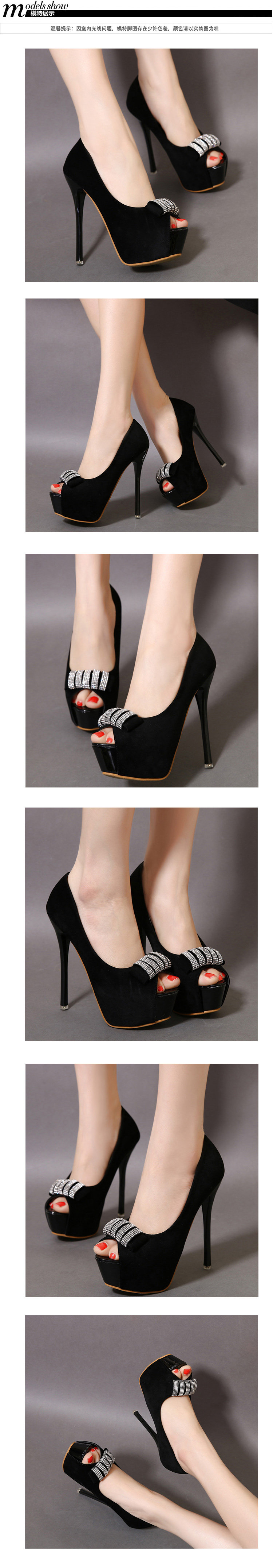 韩国公主春夏性感12CM细跟超高跟鞋女蝴蝶结水钻绒面鱼嘴单鞋