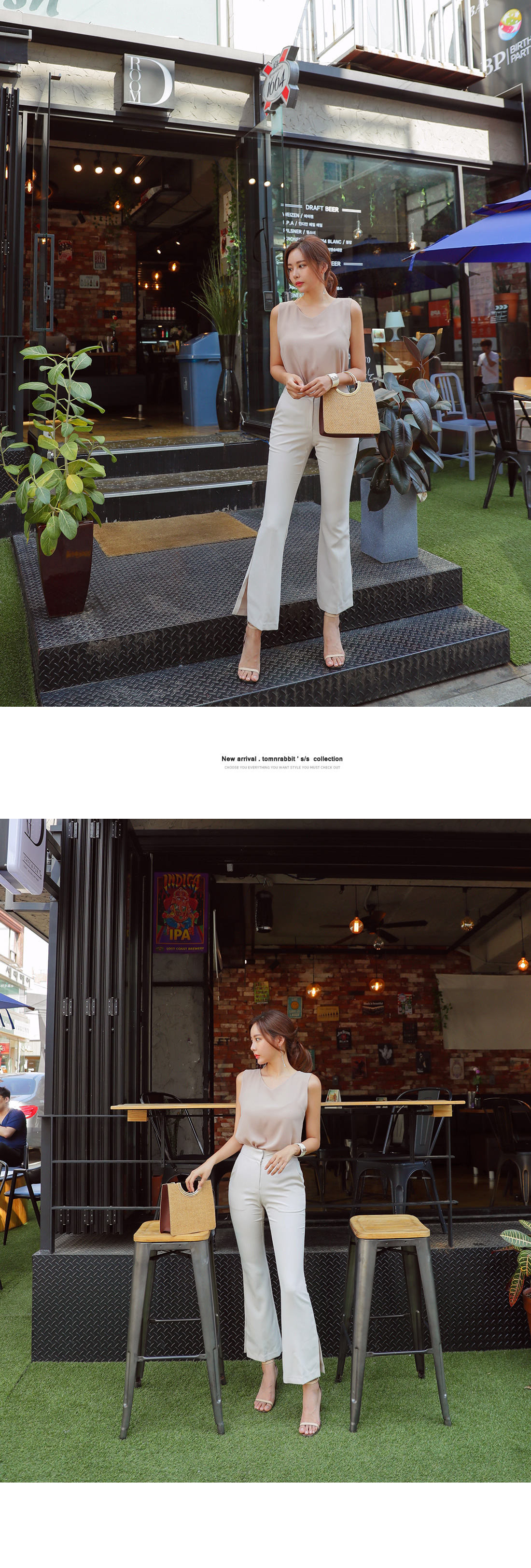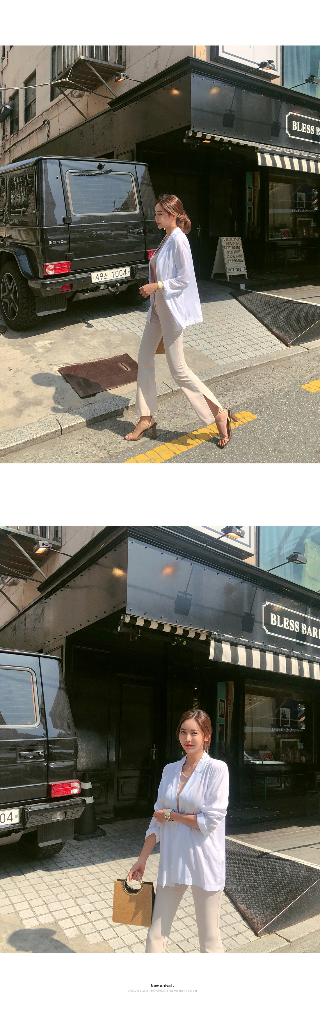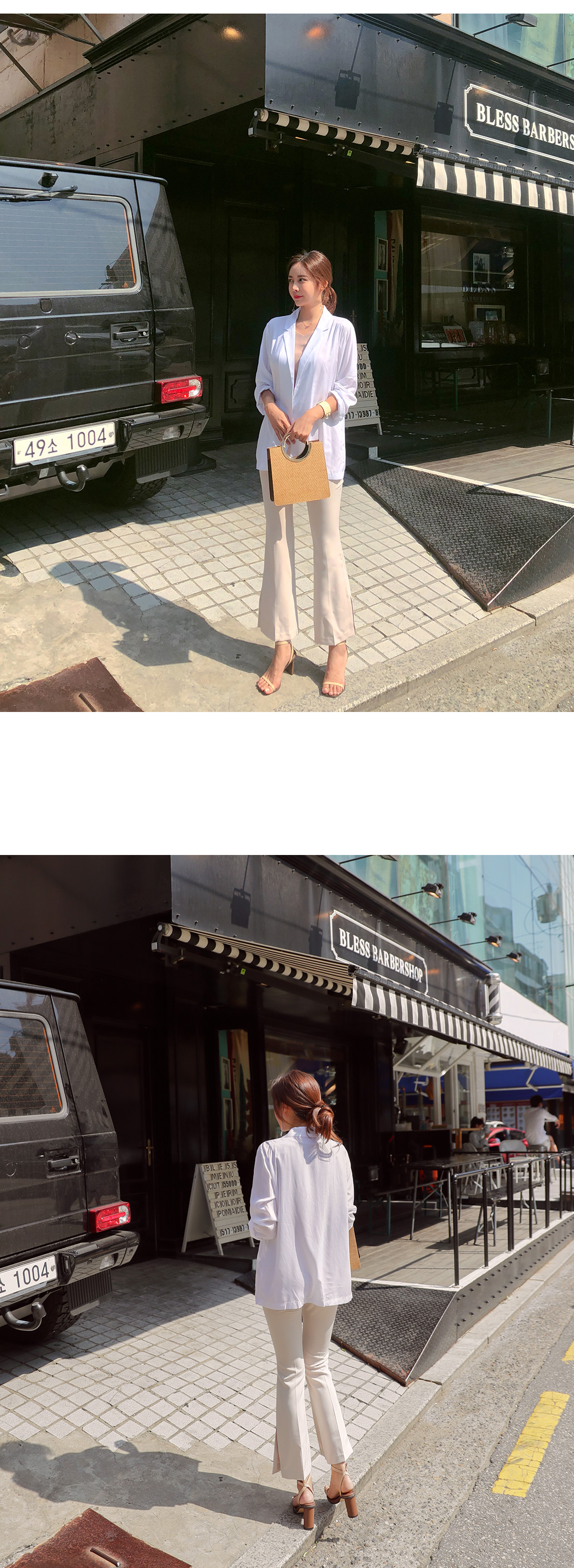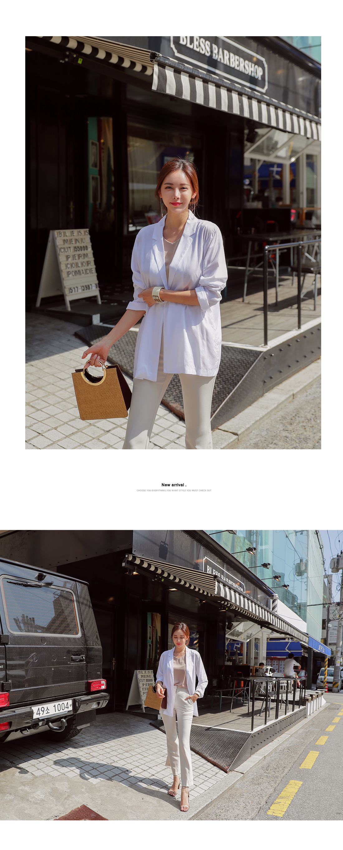 폴리 혼방 소재감으로 S/S 시즌 데일리하게 즐기기 좋으며