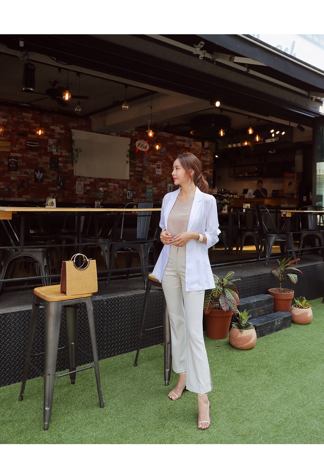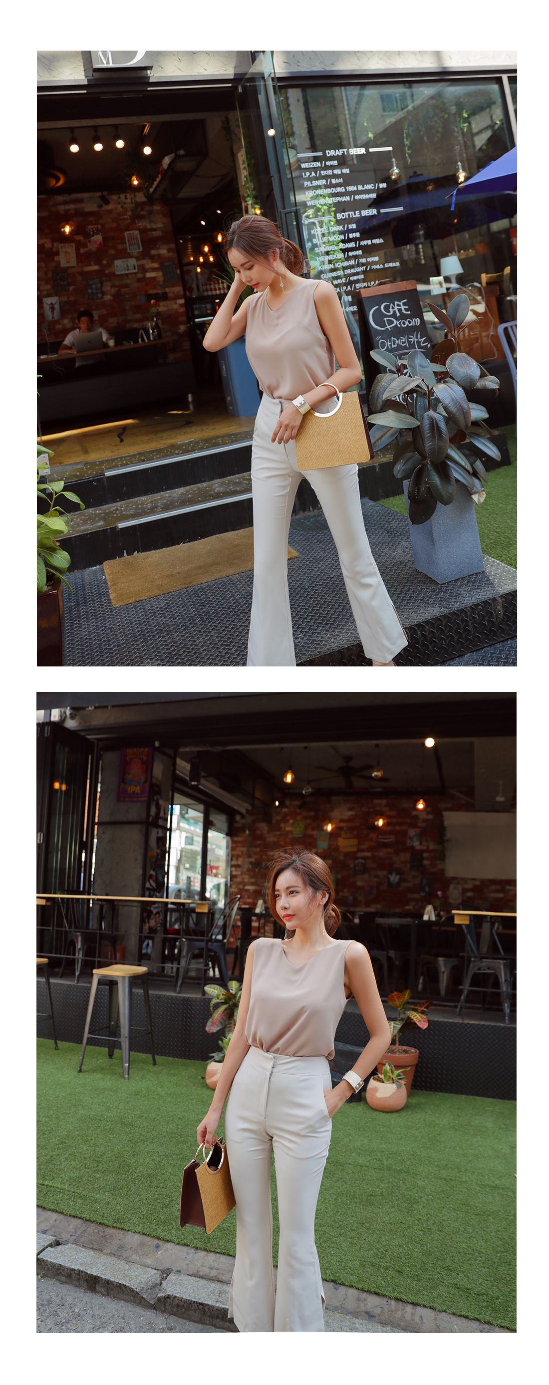 모델이 착용한 컬러는 베이지 S 사이즈 착용했어요.