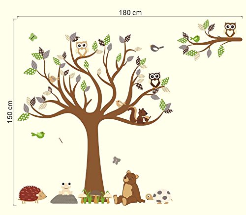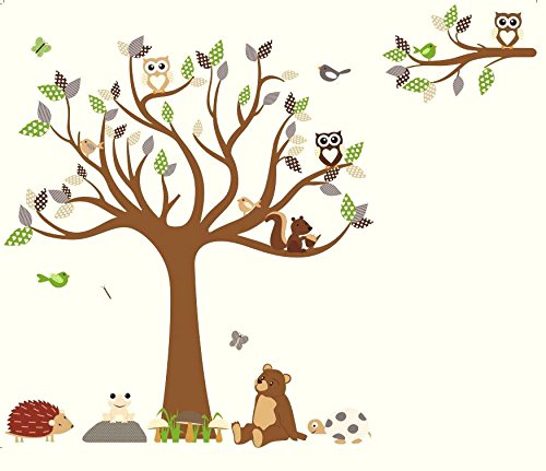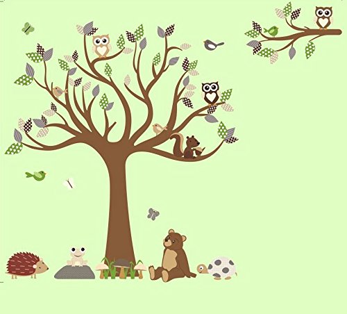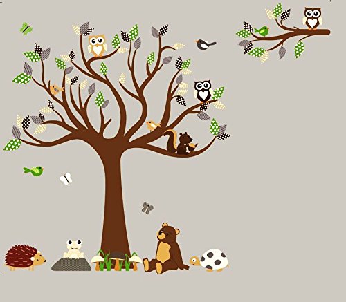 HH Baby Boutique Nursery Owl Wall Decal, Teddy Bear, Turtle, Frog Wall Decals, Nursery Animal Wall Decals, Nursery Tree Wall Decal XL