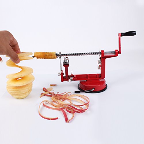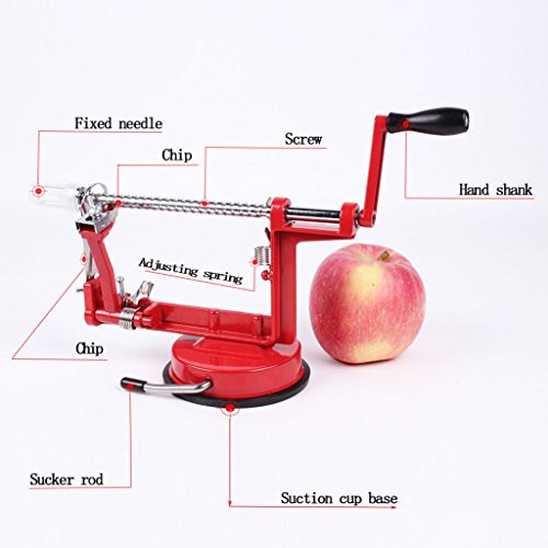 Multifunctional Apple Peeler Core Section Fruit Peeler Apple and Potato Peeler Corer and Slicer (Red)