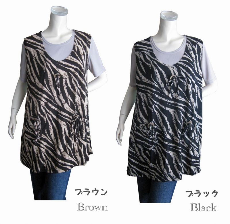 | 【2色組】ゼブラ柄チュニックベスト ゆったりLLサイズ | |