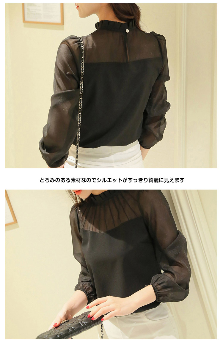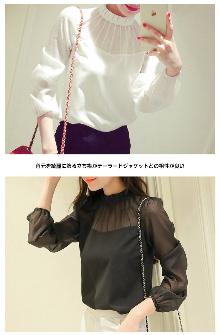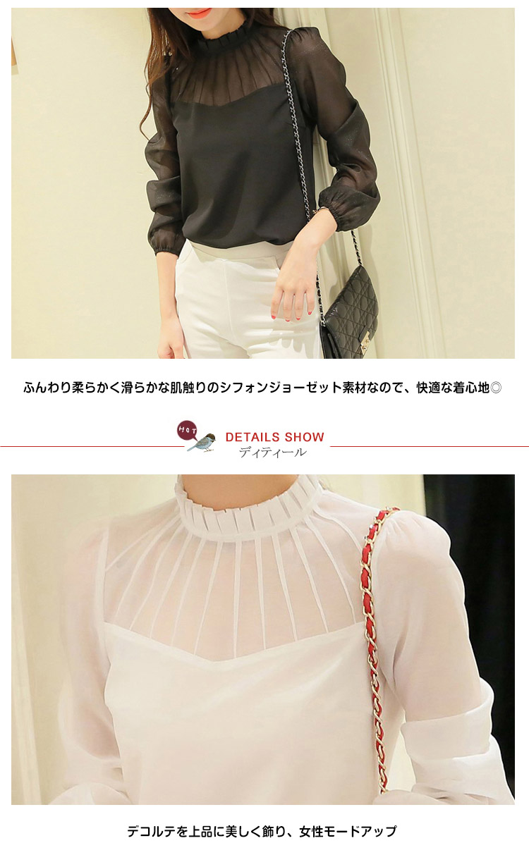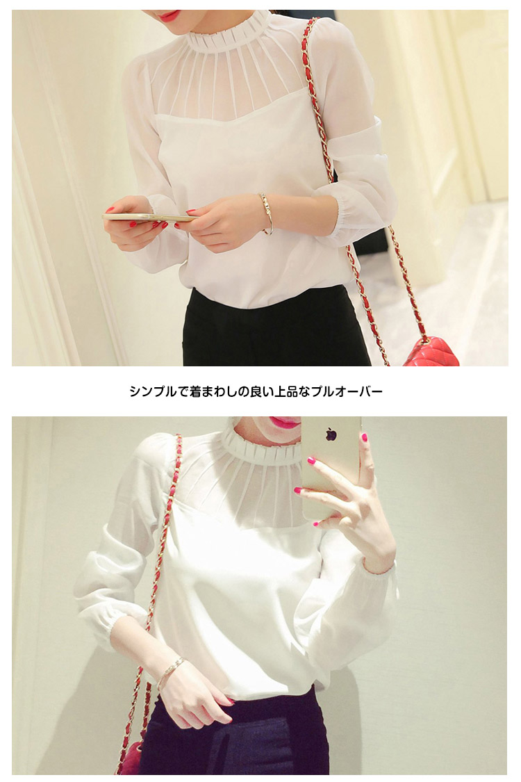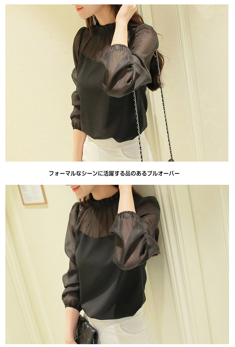 | シンプルで着まわしの良い上品なプルオーバー首元を綺麗に飾る立ち襟がテーラードジャケットとの相性が良いフォーマルなシーンに活躍する品のあるプルオーバーとろみのある素材なのでシルエットがすっきり綺麗に見えますふんわり柔らかく滑らかな肌触りのシフォンジョーゼット素材なので、快適な着心地◎ | |