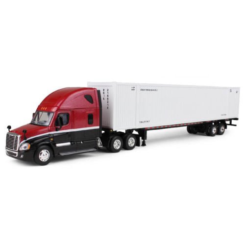 -. Feature : Brand new box. Rubber tires. Detailed interior, exterior. Made of diecast metal. Detailed cab interior Detailed chassis and undercarriage Pivoting fifth-wheel for trailer attachment Container lifting/loading point details Container rear door details Working landing gear on chassis Removable container from chassis Dimensions approximately: 12.75"L x 2.5"W x 3'H inches.