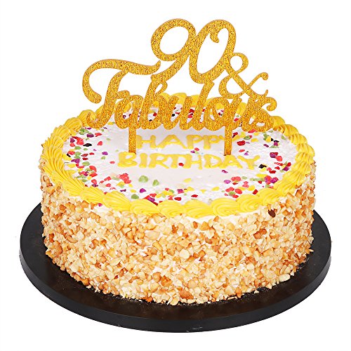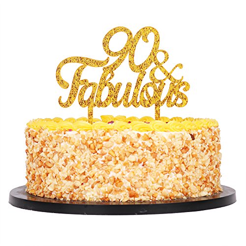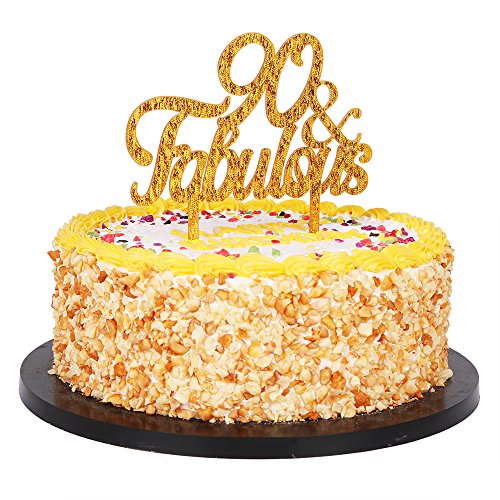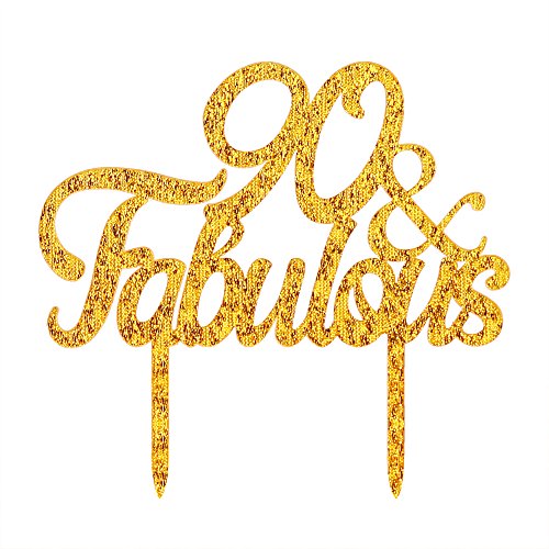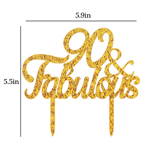 QIYNAO Gold Premium Quality Acrylic 90& Fabulous Cake Topper Happy 90th Birthday Anniversary Party Decoration