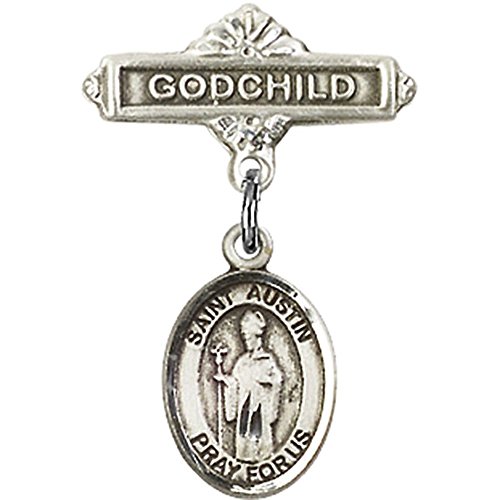 -. Title : Sterling Silver Baby Badge with St. Austin Charm and Godchild Badge Pin 1 X 5/8 inches