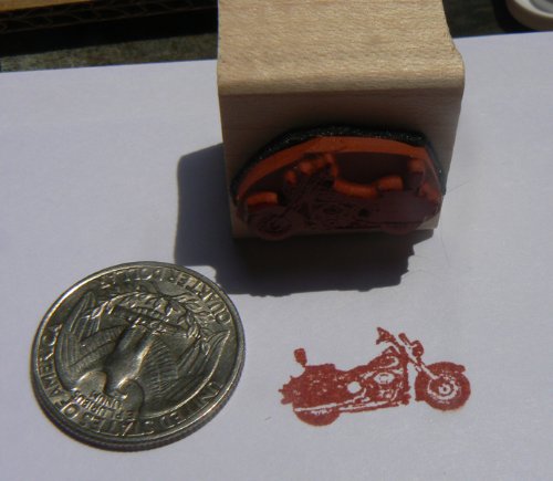 Motorcycle rubber stamp. Wood mounted and deep etched measures 1x0.5"