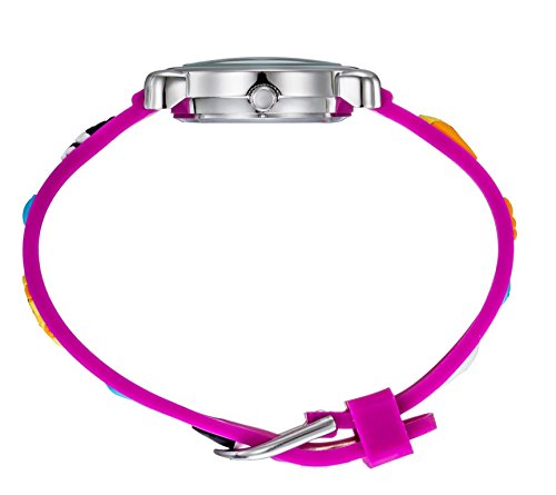 Quartz movement with analog display;Rubber link band with buckle closure.