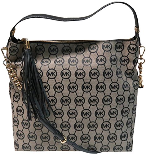 -. Binding : Apparel -. Brand : Michael Kors -. Color : Beige/Black/Black -. Department : womens -. EAN : 0889154949416 -. Feature : Single Handle; Gold Hardware; Removable Adjustable Shoulder Strap / Top Zip Closure / Signature Logo / Interior Zip Pocket; 4 Slip Pockets / Measures Approximately 13" x 12" x 4" Inches -. ProductGroup : Shoes -. ProductTypeName : BAG -. Size : One Size -. Title : Michael Kors Bedford Large Top Zip Shoulder Bag Beige/Black/Black -. UPC : 889154949416