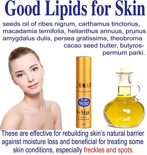 -. Feature : I Max age spot reducer is very effective to prevent and reduce the appearance of dark spots, age spots, signs of sun spots, melasma and post acne scars due to its multi-functions. This cream reducer works in many active ways and have multiple benefits that will have your skin looking brand new and 10 years younger. / It possesses the function of exfoliating the old dead skin, which uncovers a beautiful looking surface. It has a clever depigmentation function that whitens your skin by suppressing UV induced melanogenesis, to inhibit tyrosinase activity, superoxide anion production and cyclo-oxygenase activity from Alpha Arbutin, Melatonin, Niacinamide, Glutathione, Tanexamic Acid and Glabridin from Licorice Extract. / I Max age spot reducer also has the function of Skin Cell Renewal. Stem Cell, Peptides and Phloretin CF, which have multiple benefits to your skin. Get ready to uncover your true beauty. / Helps prevent formation and reduce the appearance of dark spots, age spots, signs of sun spots, melasma and post-acne scars. Reduces discoloration to improve clarity. Active skin lightening complex with clinical grade ingredients. Proactively targets damaged skin with sun-spots, age spots, melasma, sun spots, acne scars and other skin discoloration to deliver optimal dark spot fading results. Promotes a more even, uniform complexion. / This cream may have a synergistic effects if combined with some chemical peeling products like low concentrate AHA, TCA or Lactic Acid serums and creams although this is a very mild peeling cream. The high concentrate serums need to be diluted and a patch test is always necessary before using any chemical peeling products including this cream