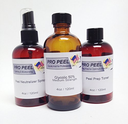 -. Title : Amazon's Lowest P.R.Ice YOU Save $64.00+ Free Shipping 50% Glycolic Peel Kit- Medium Strength, 3-4oz Bottles in Kit. Get Double the 50% Glycolic @ the Same P.R.Ice As Amazon's Leading 50% Glycolic, 2oz Kit, Items: Peel Prep Solution 4oz (120ml), 50% Glycolic Peel 4oz (120ml), Neutralizer Spray Solution 4oz (120m) for Wrinkles, Blackheads, Large Pores & More From Propeel