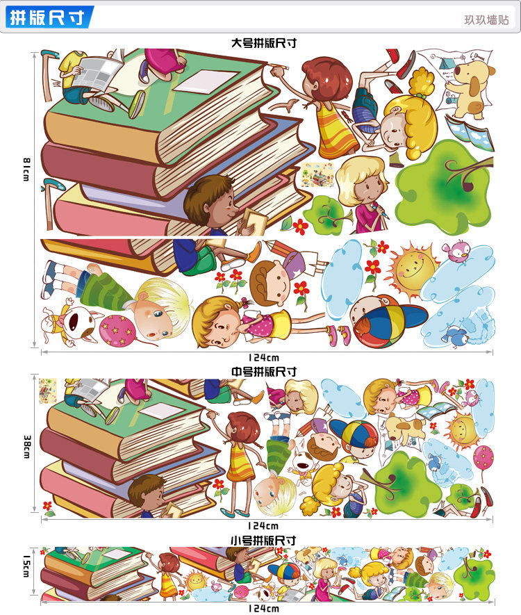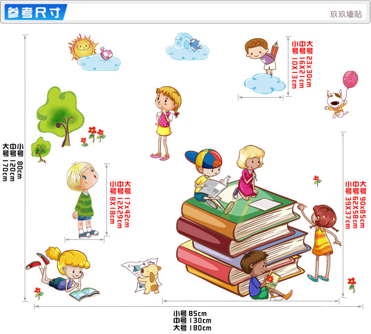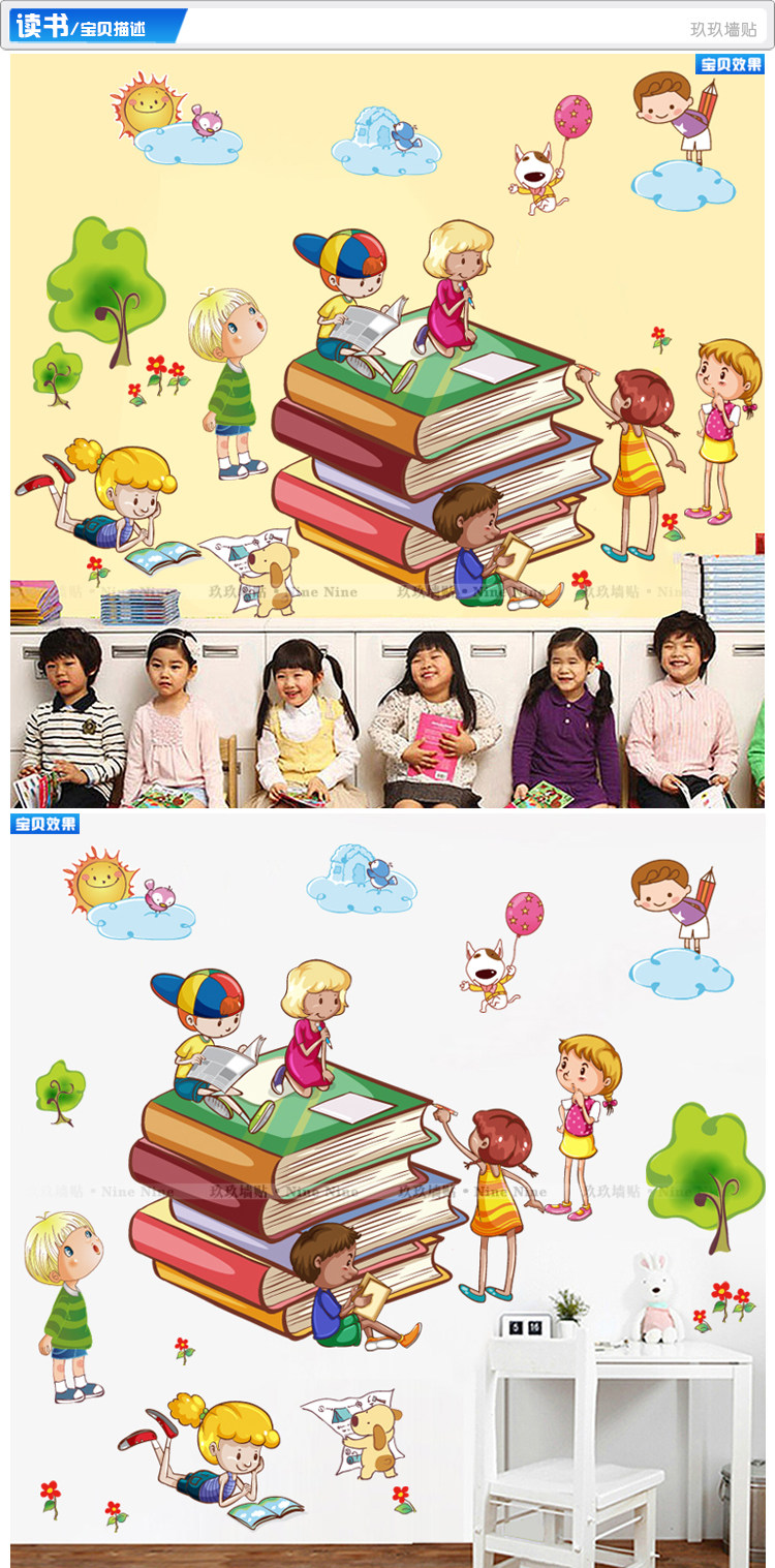 幼儿园小学校墙贴学前班卡通小朋友书本儿童启蒙读书学习贴纸贴画