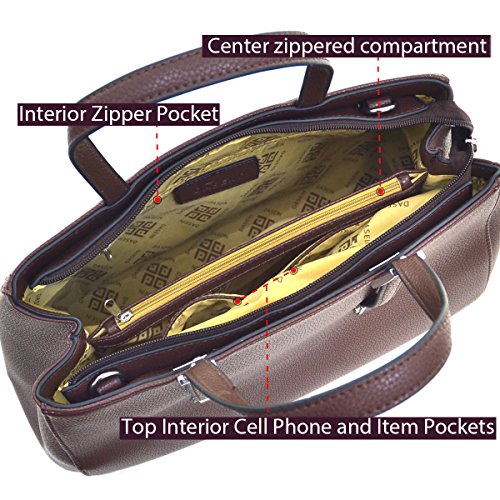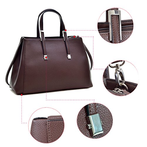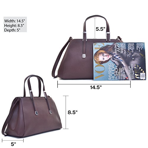 -. Feature : YOU WILL GET: 1 designer satchel. Rounded top handles and a detachable shoulder strap makes you can use it as a top handle bag or a shoulder bag. Elegantly structured and crafted from buffalo leather, this small classic satchel is the ideal everyday carryall. / DETAILED INFORMATION: SATCHEL size: 14.5"W x 8.5"H x 5"D, handle drop length: 5.5". Shoulder strap length: End to End 42''. Made of high quality buffalo faux leather. Top zipper closure. Gold tone and flat bottom. The incredibly spacious design is perfect for storing all your essentials, and interior zip compartments help organize daily things. Exterior back panel zipper pocket for easy access. / MULTIFUNCTIOANL: Handbag fits a 12'' laptop, tablet, document, book, wallet, kindle, snacks. The exterior zip pocket is awesome for cards, receipts, random beauty items and cash. / BEAUTIFUL PACKAGE & FAST DEVERTY: ~Dust bag included which is also a vegan fabric shopping bag. One Dasein Box or Amazon box seriously protect the bag from damage. Pefect to use as birthday gifts, girls, mom, ladies, friends, her. ~Ship from Los Angeles or Amazon Warehouse. FREE Standard Shipping In Contiguous United States. / 100% MONEY-BACK: We think you'll adore this bag. But in case you're dissatisfied with it for whatever reason, return it to us within 30 days for a FULL refund. No hassles, no questions asked, no risks. Find more Dasein bags now!