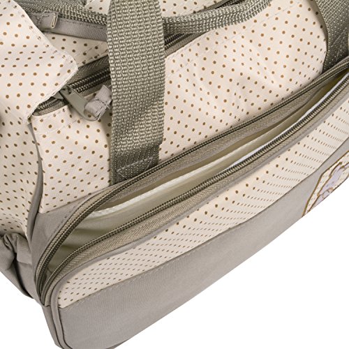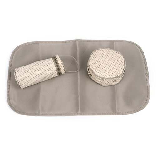 Materials: Microfiber, Waterproof PVC lining Package Content: 1 x big bag 1 x small bag 1 x feeding bottle holder 1 x diaper pad 1 x Small food bag One set include one big bag, one small bag and 3 accessories ( feeding bottle holder, diaper pad, small food bag)Feature